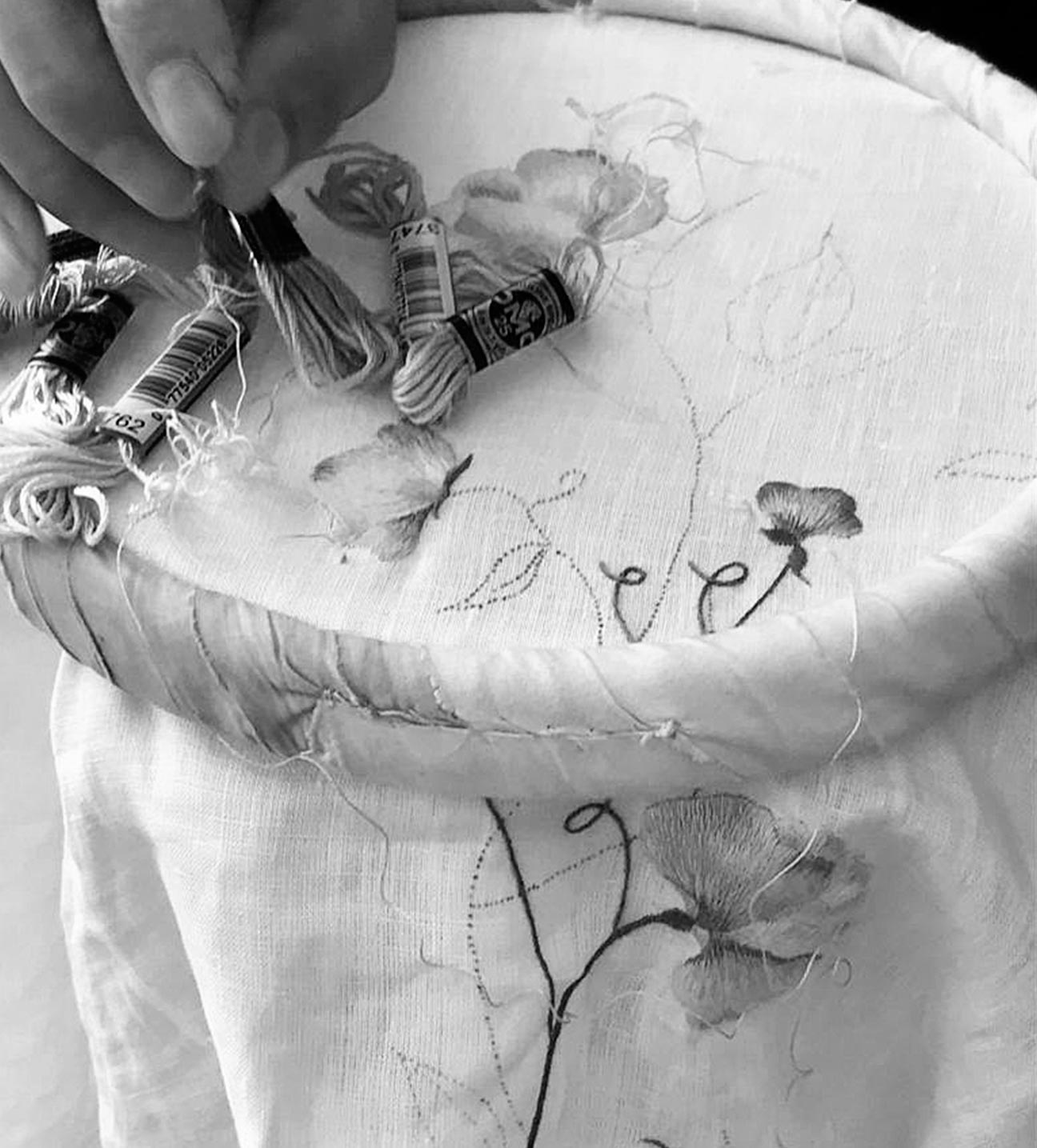 The pleasure in designing something new is that the starting point often leads somewhere completely unexpected. Our first goal is to make it beautiful, to nourish the eye; to give pleasure. Our inspirations are varied: art, architecture, an English country garden, the colours of Jaipur, the jewellery gallery in London’s V&A Museum, a brooch in a Piero della Francesca painting. We cast our net wide, and many ideas come from our travels in Europe and to far-flung corners of the world. The design process begins with a pencil drawing. It’s a slow, low-tech approach, but these pencil strokes are what translate into our hand embroidered designs and hand-carved wood block prints. This hands-on approach – and the unique finish it produces – is the key to everything we do.